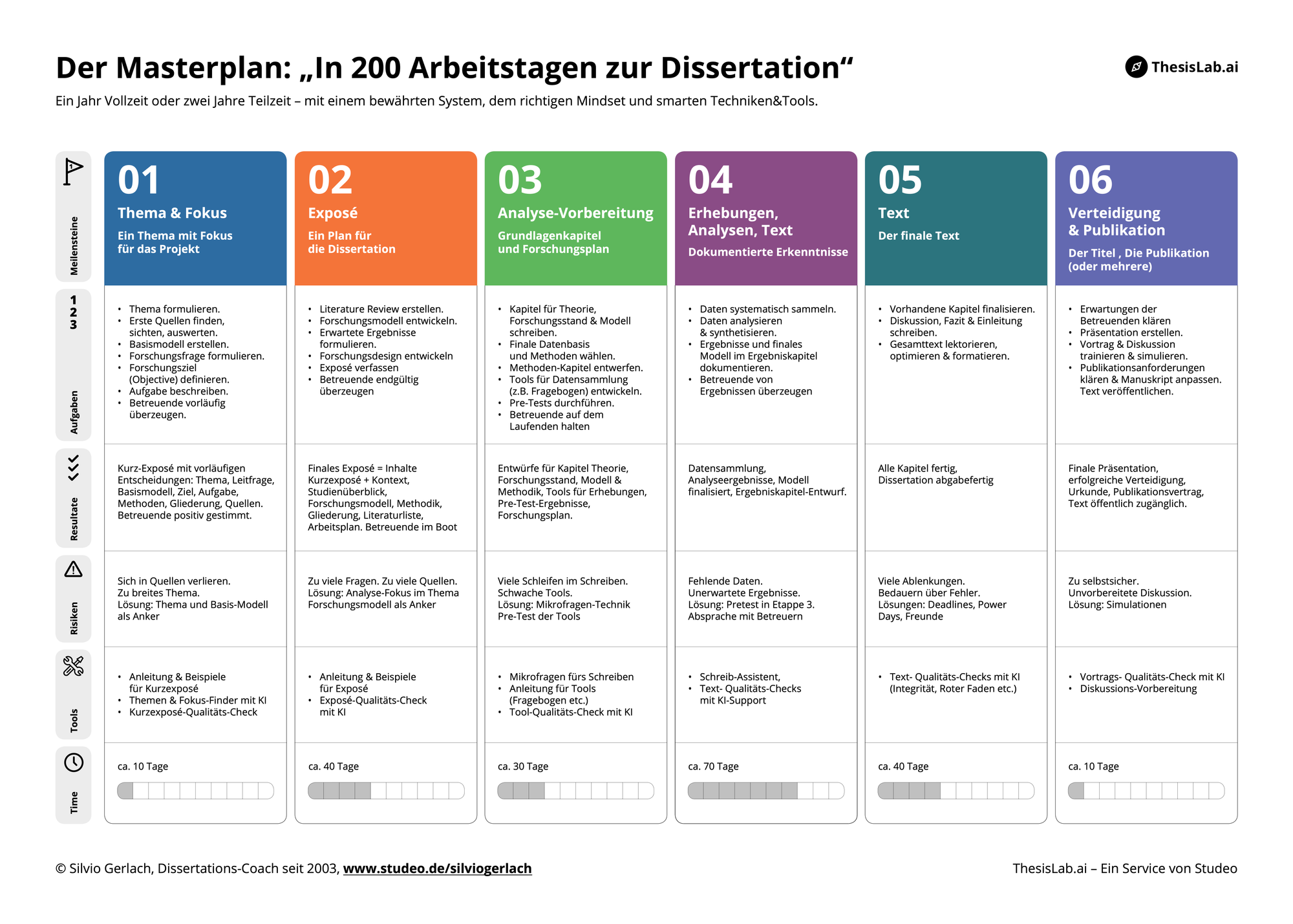 Die Doktorarbeit ist ein langes, einsames Projekt voller Risiken, Probleme und Rückschläge. Seit 20 Jahren helfen wir dabei, mit einem bewährten System, vom Masterplan über den Bestseller "In 200 Tagen zur Dissertation" bis zum privaten 1:1 Coaching. Auf eine erfolgreiche Doktorarbeit.