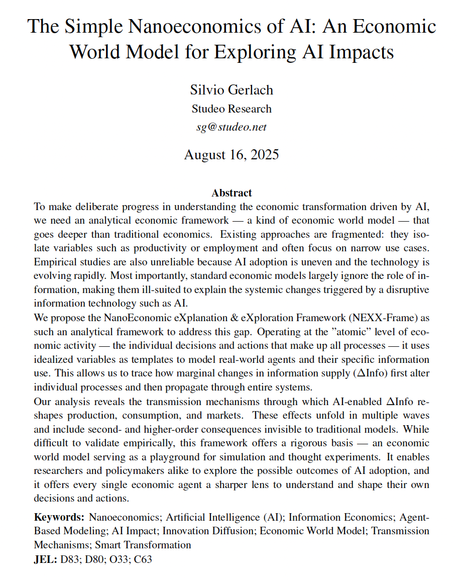 We explore the impacts of AI in the real world by applying systems theory, nanoeconomic modeling and simulations. Please find here the first astonishing result, a systemic framework that allows us to look deep into the future.